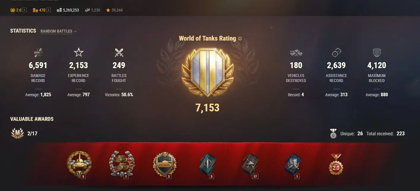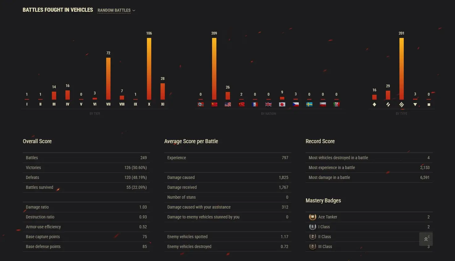 2 TOP TANKS | 2 PREMIUM TANKS | 470 GOLD | 249 BATTLES | INACTIVE