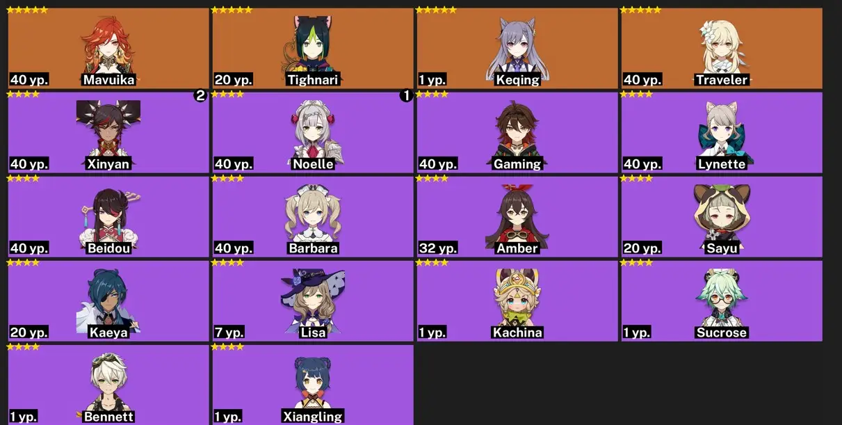 ASIA- AR:27- MAVUIKA - TIGHNARI - KEQING -18 characters