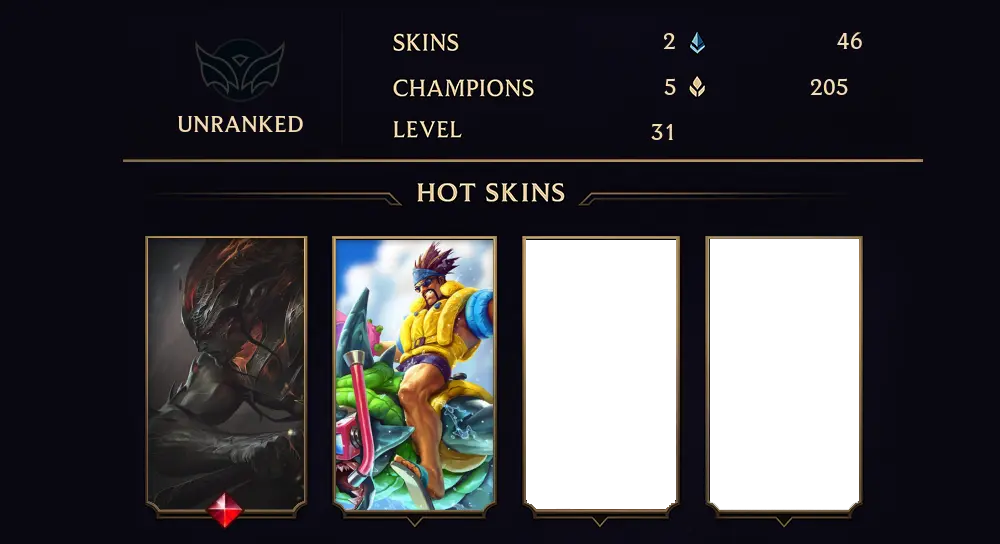 EUW - UNRANKED - 33 LVL - 2 SKIN