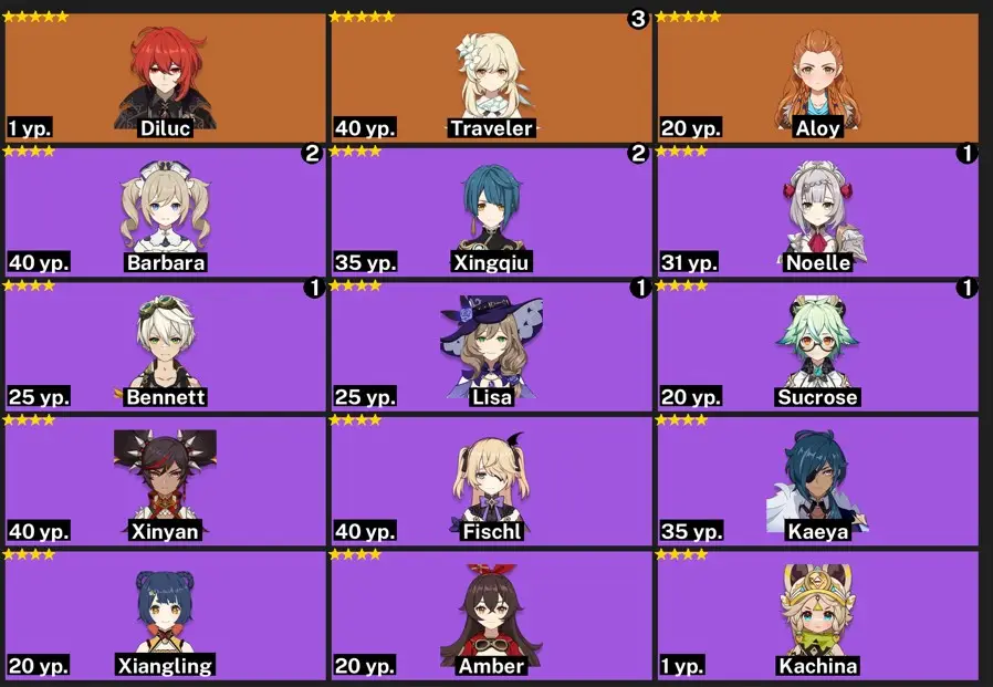 [{"type":"text","content":"-----Genshin Impact\n\nRARE LEGACY character: ALOY\nlegendary weapons: 0\nconstellations: 0\nAdventure Experience: 32\nCharacters: 17\nAchievements: 101\nTwisted abyss: -"}]