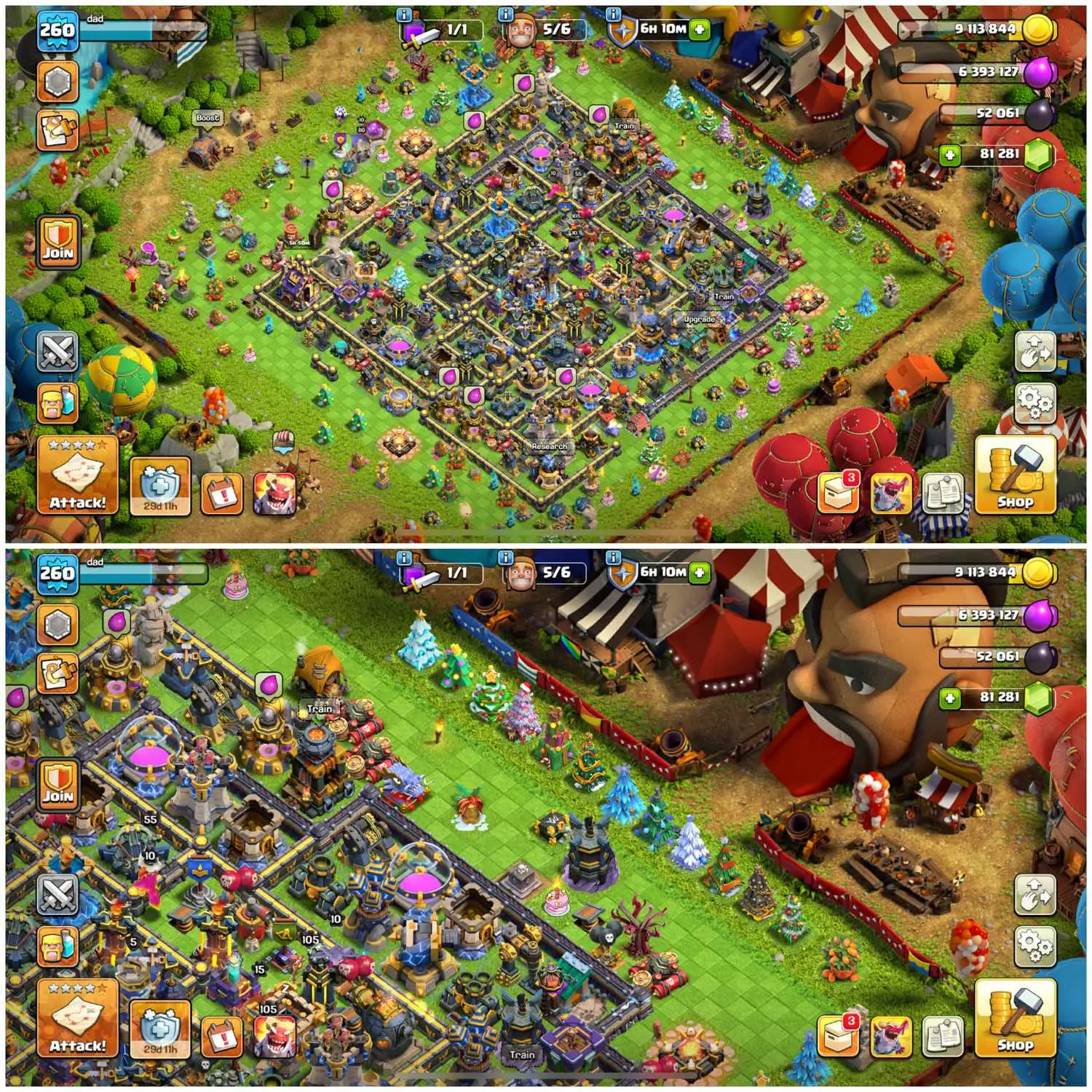 2014-25 All X-Mas Tree TH18 Max 100% 81,200 Gems Rare 75 Skins 5 Hero Max Max Equipment Loaded Magic Item