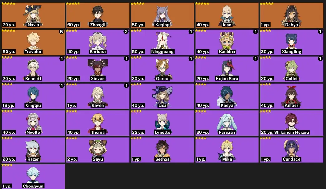 EU - AR:41-NAVIA - ZHONGLI - KEQING - JEAN - DEHYA -31 characters