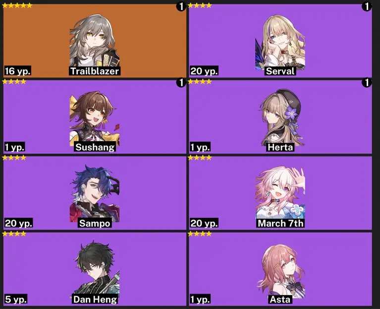 [{"type":"text","content":"-----Genshin Impact\n\nlegendary weapons: 0\nconstellations: 0\nAdventure Experience: 25\nCharacters: 14\nAchievements: 64\nTwisted abyss: 2-3"}]