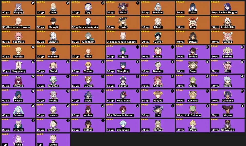 EU- AR:59- 65CHARACTERS [ 23 - 5 STARS CHARACTERS ]