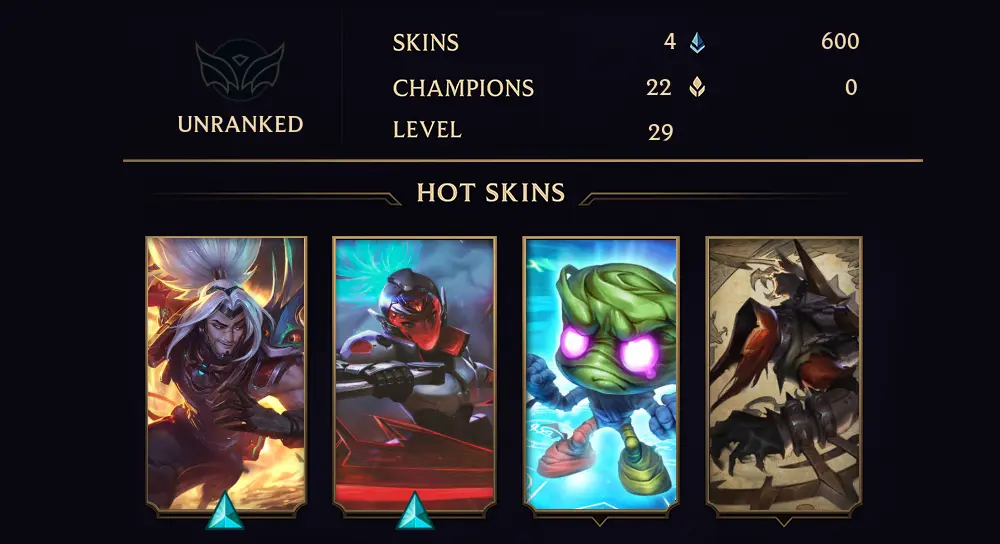 1766188997 League of Legends UNRANKED - 29 LVL - 4 SKIN Account | Rutaku | Best Account Marketplace