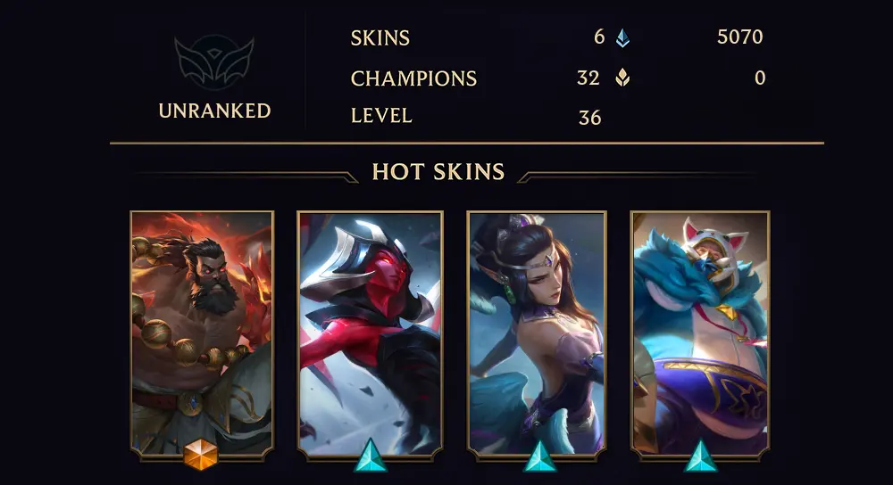 UNRANKED - 36 LVL - 6 SKIN