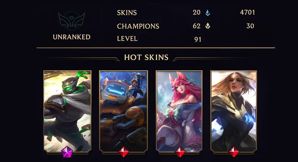 UNRANKED - 91 LVL - 20 SKIN