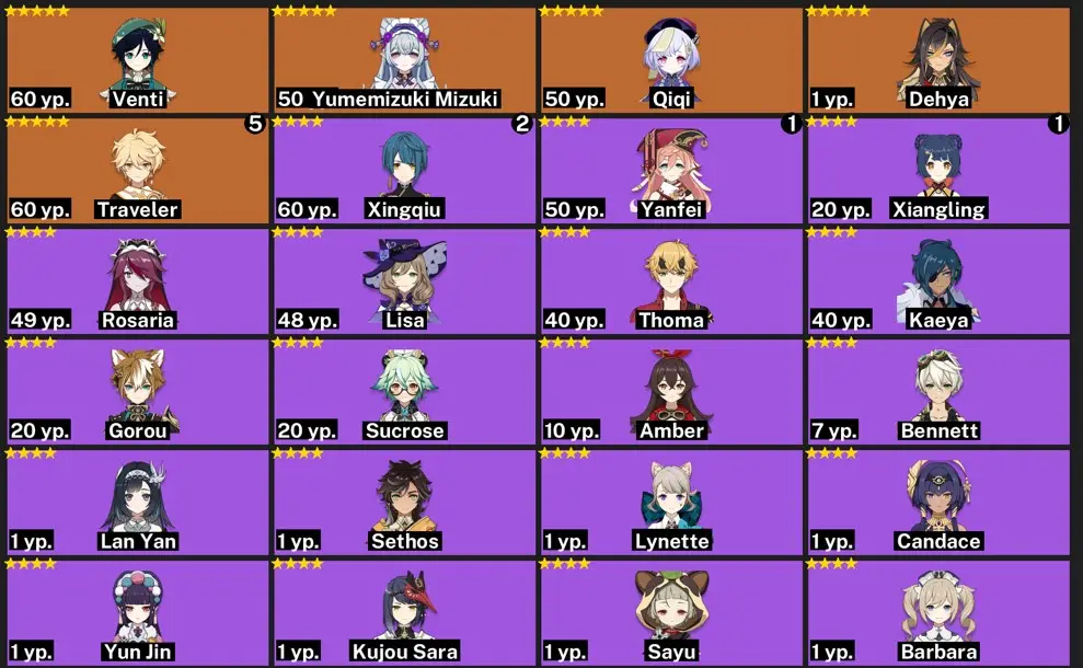 ASIA- AR:55- C1 WANDERER- YELAN- RAIDER SHOGUN-MONA-QIQI15 characters
