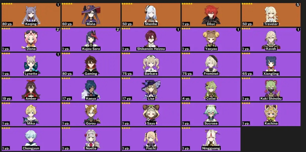EU- AR:47- KEQING - DILUC - SHENHE - MONA - 29 characters