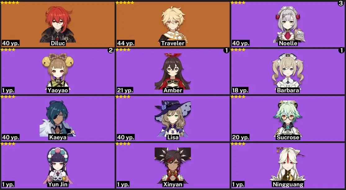[{"type":"text","content":"---\n\n-----Genshin Impact\n\nlegendary weapons: 3\nconstellations: 1\nAdventure Experience: 55\nCharacters: 45\nAchievements: 369\nTwisted abyss: 7-3\n\nCharacters: \nC1 DILUC\nRAIDEN SHOGUN\nNAHIDA\nHU TAO\nSANGONOMIYA KOKOMI\nTIGHNARI\nDEHYA\nJEAN\nQIQI\n\n-----Honkai: Star Rail\n\nlegendary cones: 2\nEidolons: 1\nTrailblaze Level: 54\nCharacters: 32\nAchievements: 162\nVirtual Made Manifest (IV): -\n"}]