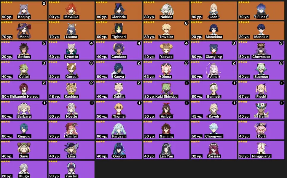 EU - AR:35- MONA - VENTI - KEQING -18 characters