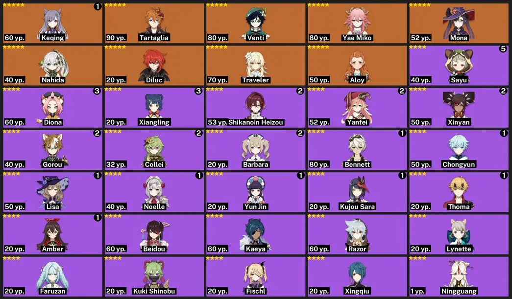 NA- AR:35- KEQING - SHENHE - MONA - ALOY - 18 characters