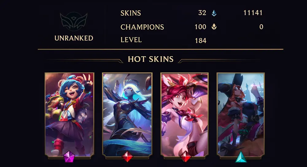 UNRANKED - 184 LVL - 32 SKIN