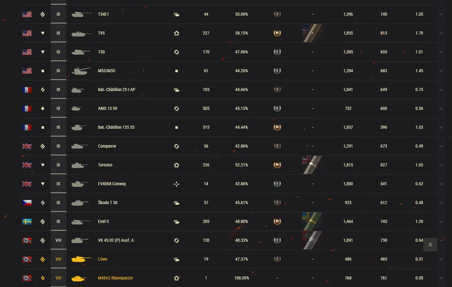 等级 VIII 坦克: 38