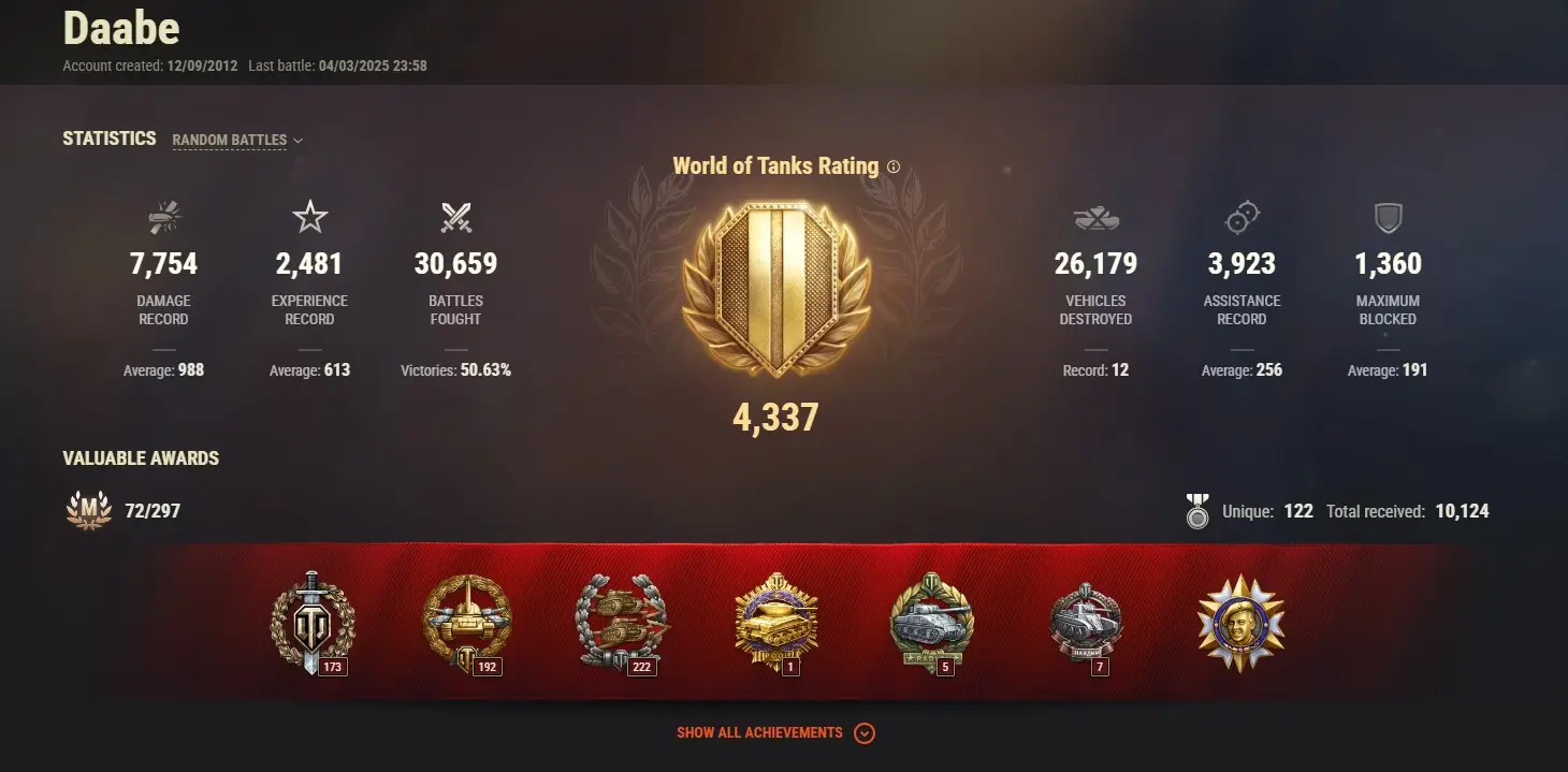 16 TOP TANKS | 38 PREMIUM TANKS | 102,046 GOLD | 30,659 BATTLES | INACTIVE