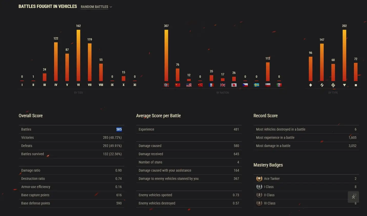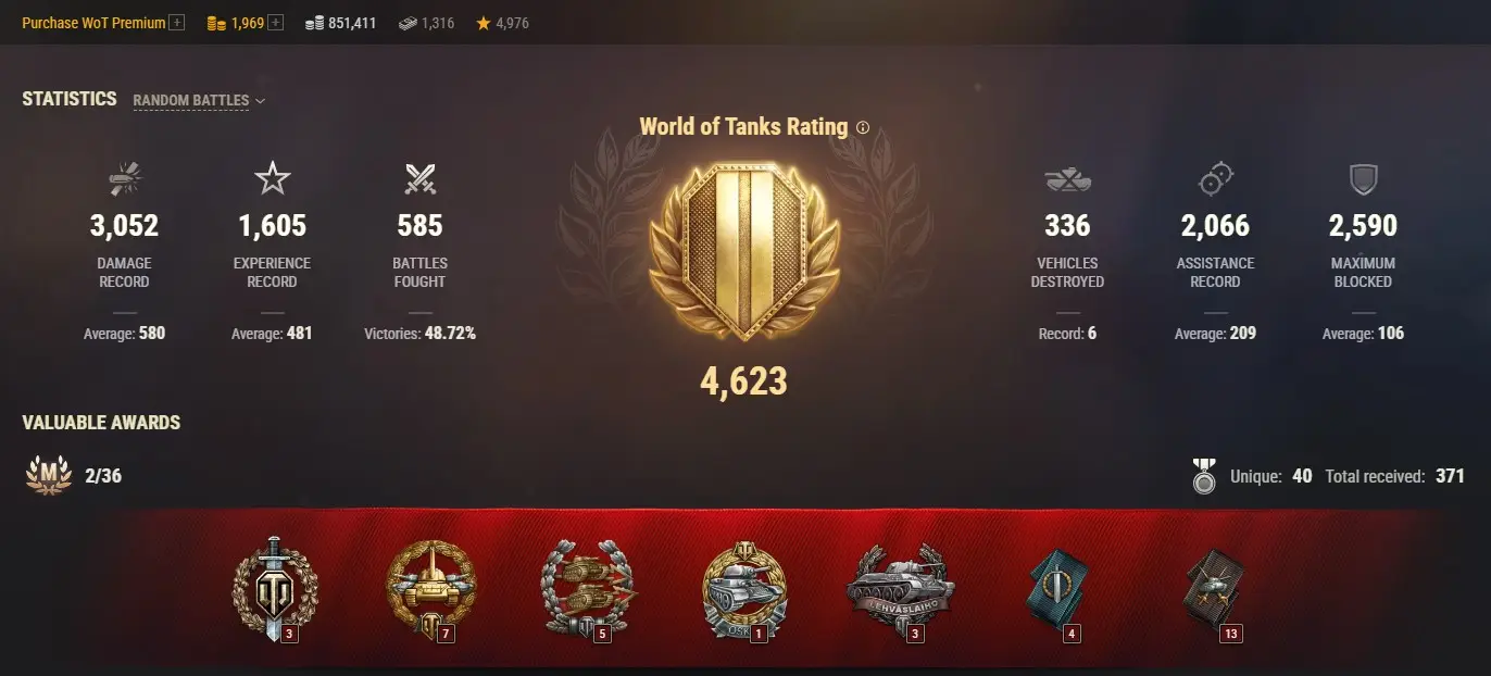 3 TOP TANKS | 2 PREMIUM TANKS | 1,969 GOLD | 585 BATTLES | INACTIVE