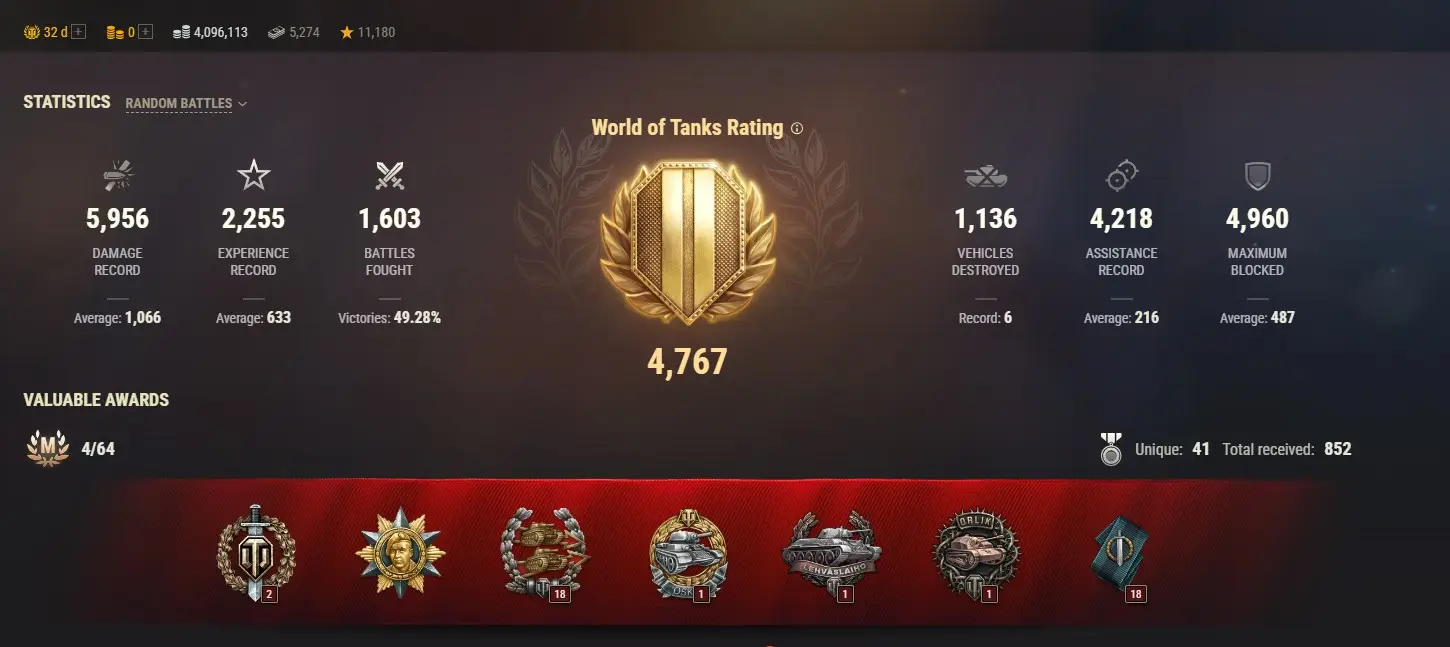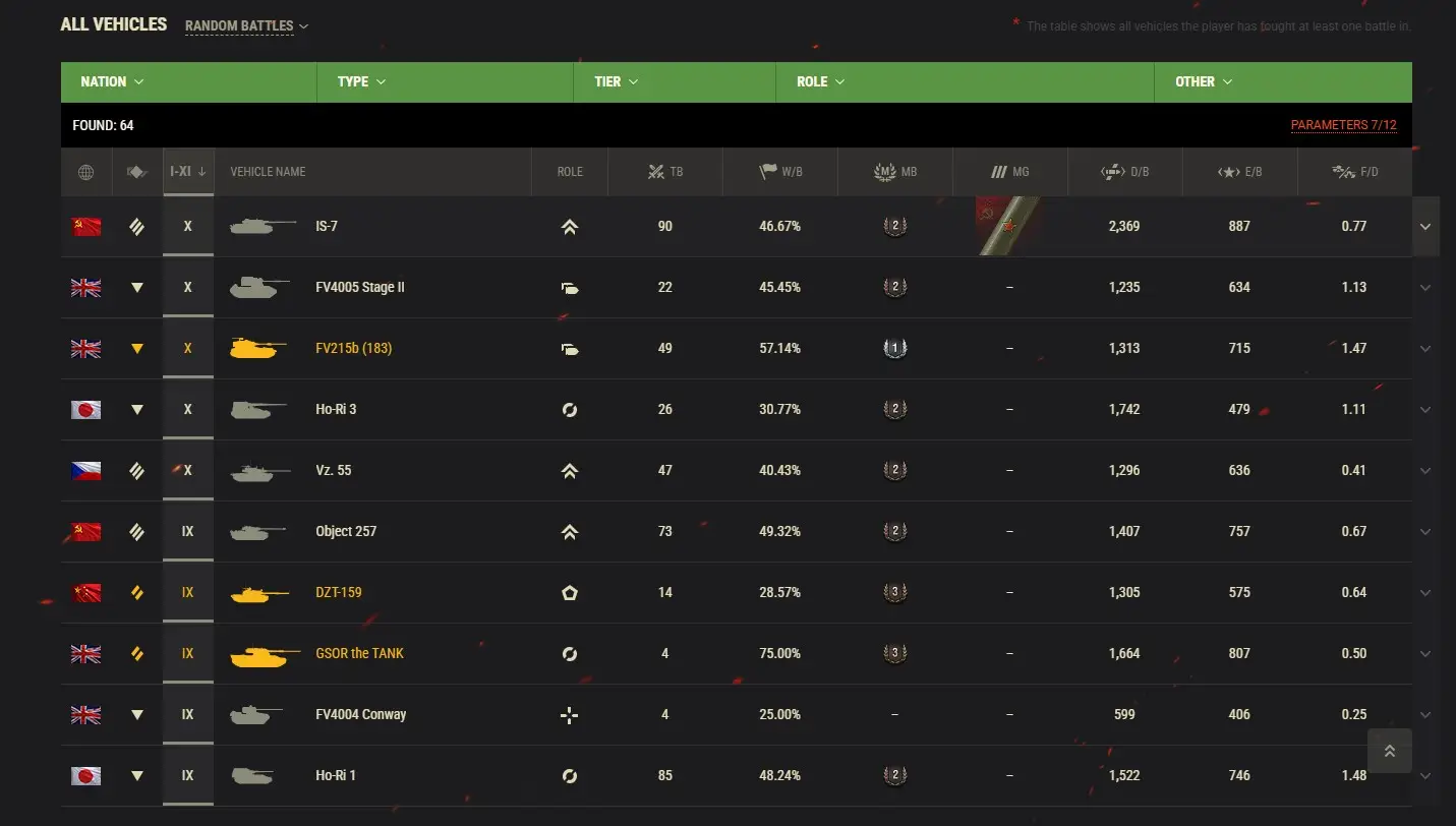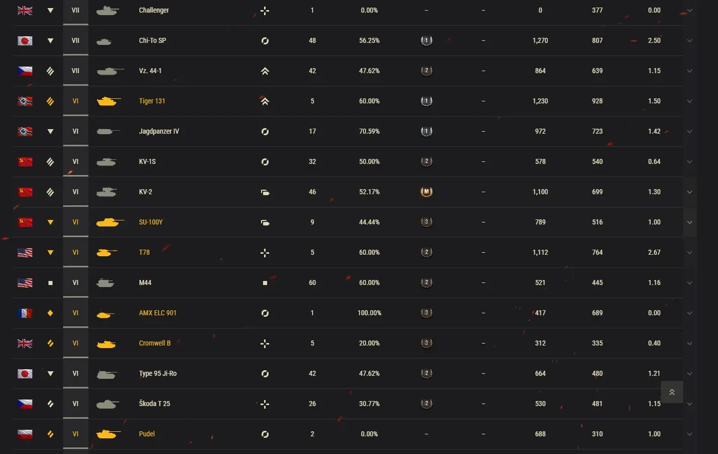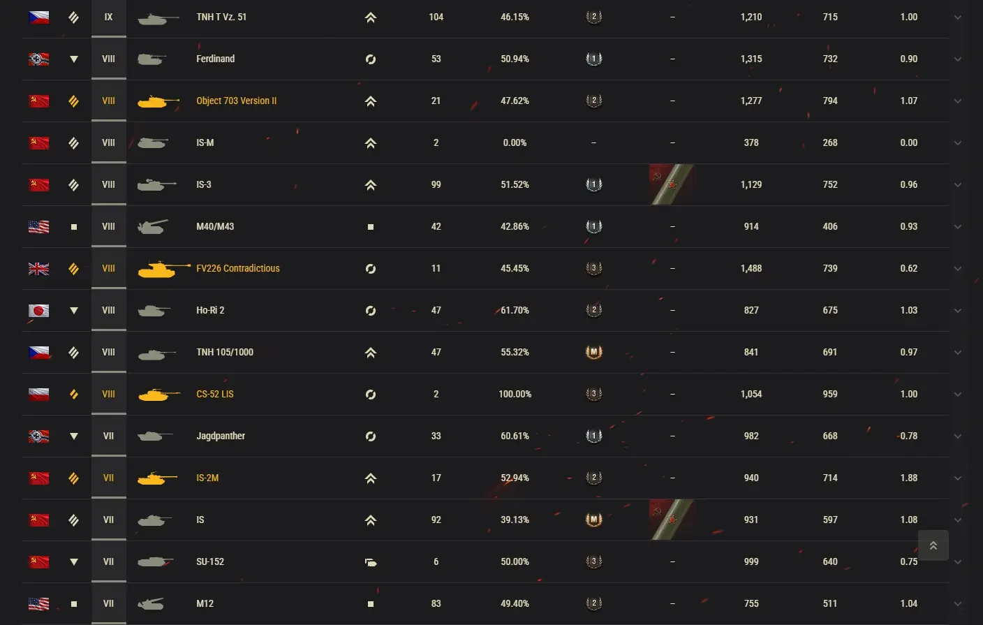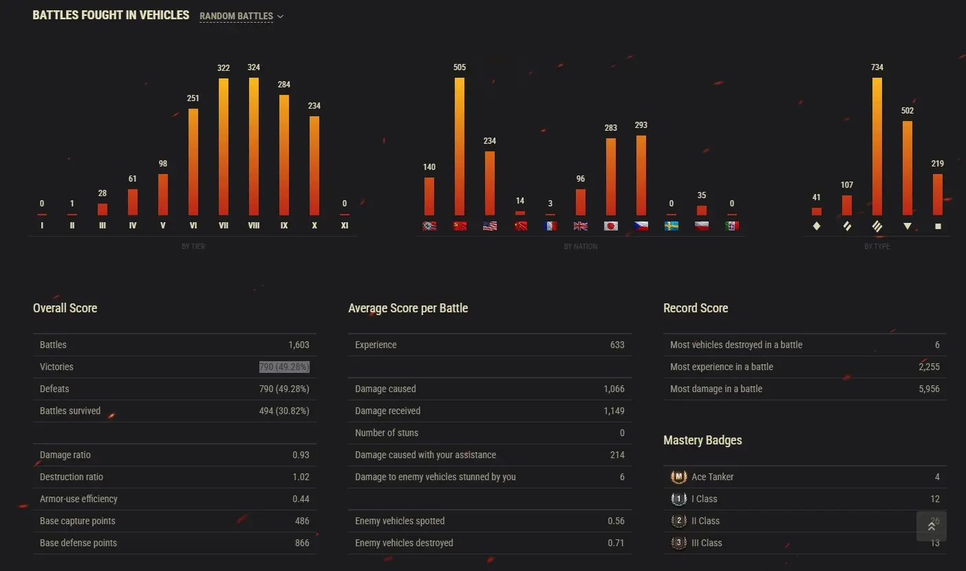 5 TOP TANKS | 5 PREMIUM TANKS | 0 GOLD | 1,603 BATTLES | INACTIVE