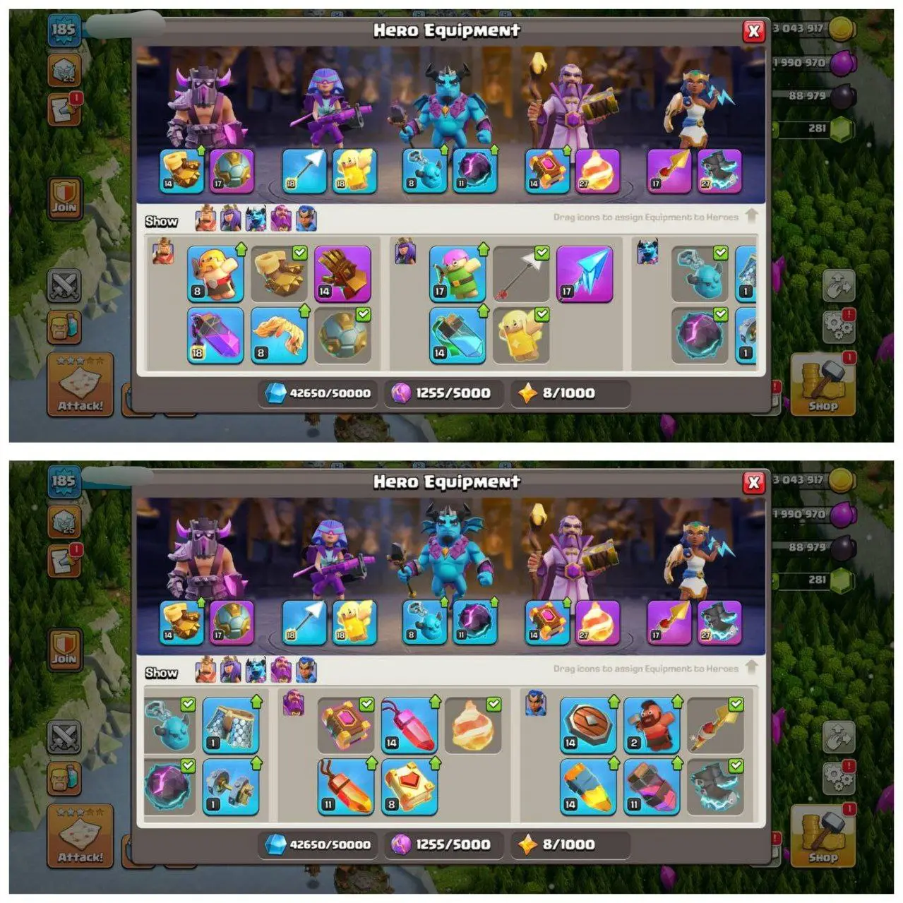 {80% DISCOUNT} TH17 HALF MAX ID⚡️6 EPIC EQUIPMENT⚡️XP-185⚡️HERO 51-72-45-35-33⚡️ MAGIC ITEMS⚡️OP LAB⚡️INSTANT DELIVERY 🚚