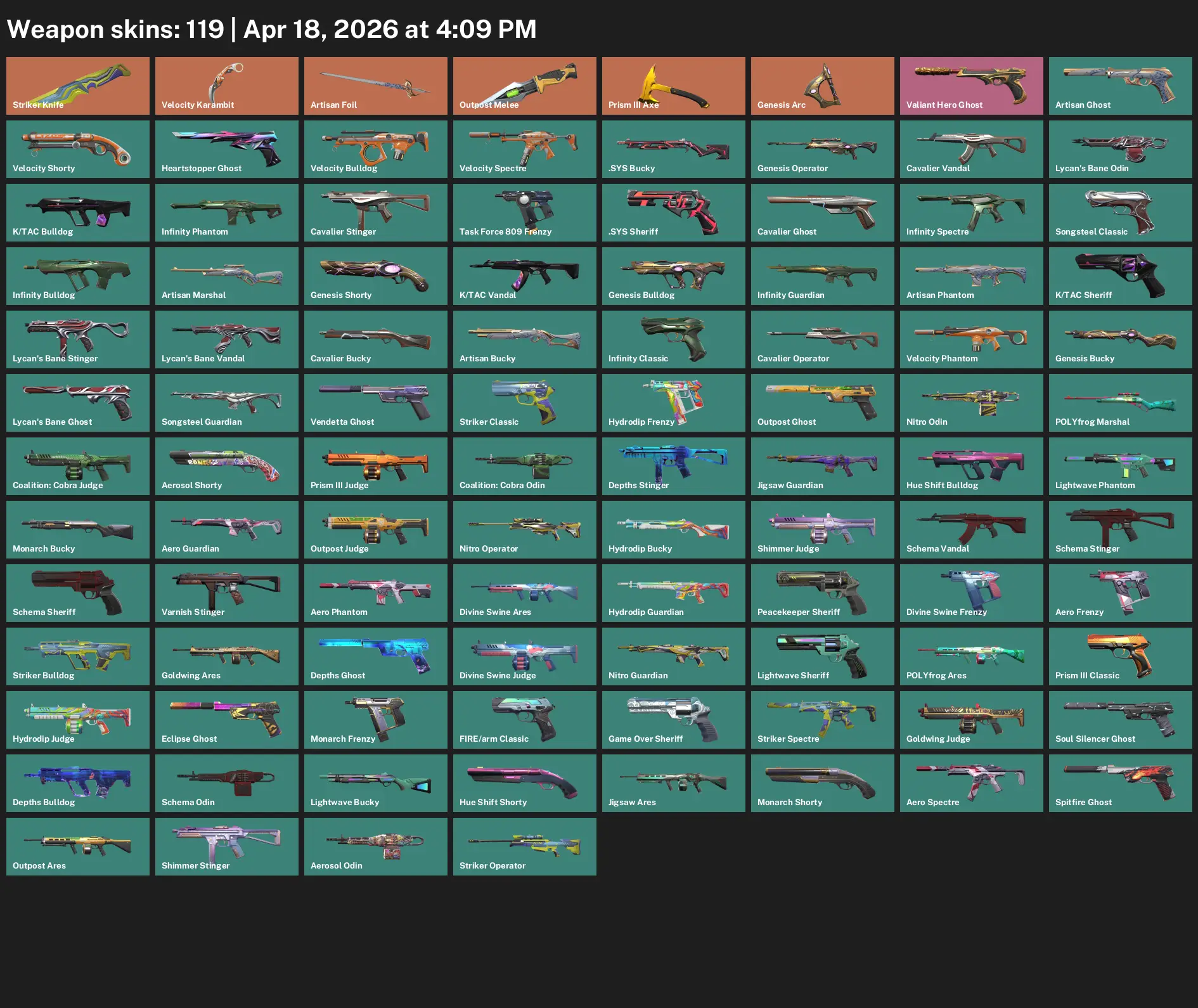 [{"type":"text","content":"Region: AP\r\nPhone Verified: NO\r\nLevel: 17Z\r\nValorant Points: 0\r\nRadianite Points: 50\r\nKingdom Credits: 6288\r\n\r\n\r\nAGENTS: 8\r\nSKINS: 0"}]